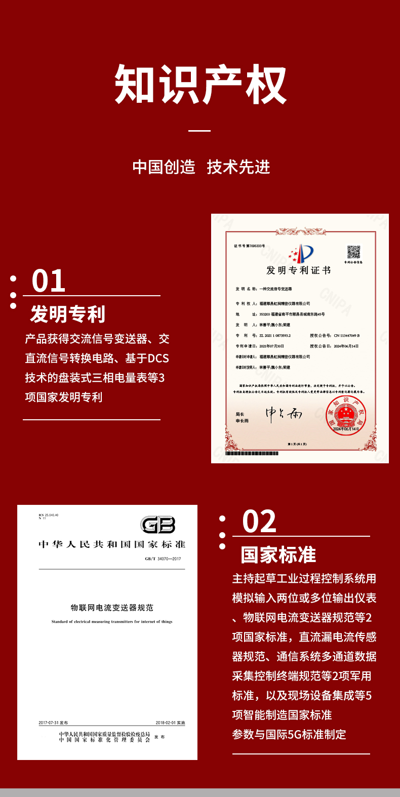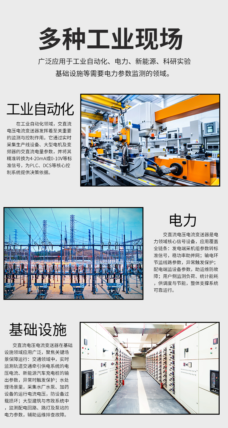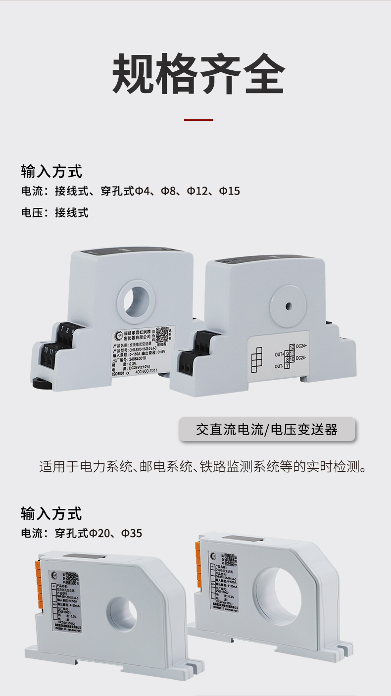 虹潤公司是專業(yè)生產(chǎn)電流傳感器的國家專精特新“小巨人”企業(yè)。生產(chǎn)的交流電壓/電流變送器,具有交流電壓/電流輸入、高精準(zhǔn)測量、響應(yīng)速度快、高抗干擾、全隔離設(shè)計(jì)等特點(diǎn)。產(chǎn)品獲得一種交流信號(hào)變送器、交直流信號(hào)轉(zhuǎn)換電路、基于DCS技術(shù)的盤裝式三相電量表等3項(xiàng)國家發(fā)明專利,主持起草工業(yè)過程控制系統(tǒng)用模擬輸入兩位或多位輸出儀表國家標(biāo)準(zhǔn),直流漏電流傳感器規(guī)范、通信系統(tǒng)多通道數(shù)據(jù)采集控制終端規(guī)范等2項(xiàng)軍用標(biāo)準(zhǔn),以及現(xiàn)場設(shè)備集成等5項(xiàng)智能制造國家標(biāo)準(zhǔn),參與國際5G標(biāo)準(zhǔn)制定。產(chǎn)品廣泛應(yīng)用于工業(yè)自動(dòng)化、電力、新能源、科研實(shí)驗(yàn)基礎(chǔ)設(shè)施等需要電力參數(shù)監(jiān)測的領(lǐng)域。